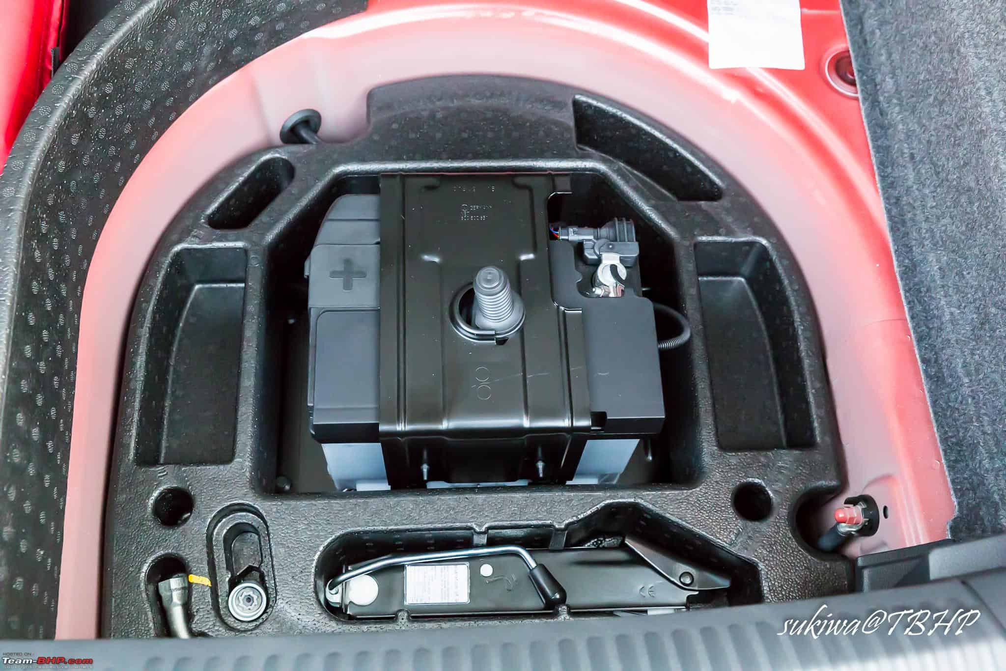 In sporty Polo versions, the battery is installed in the luggage compartment, because of the larger air filter at the front.