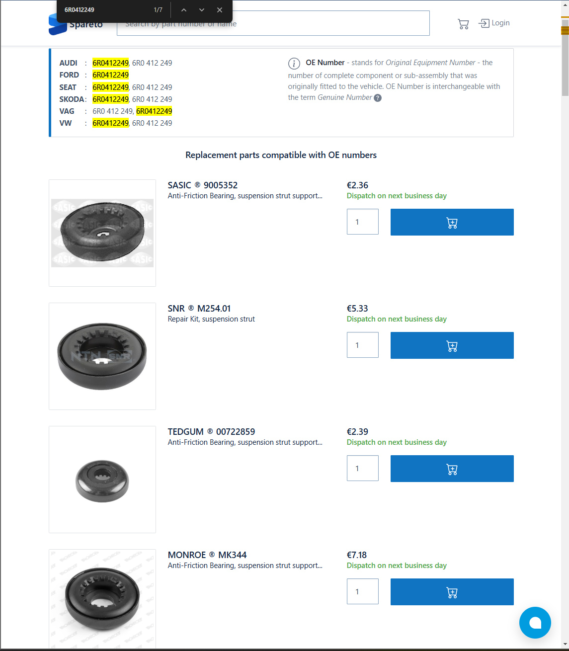 The Volkswagen Polo 6R uses 1J0412331C shock absorber cushions along with the 6R0412249 bearing for its strut assembly. While this might seem straightforward, there are several important details to consider when purchasing replacement parts.