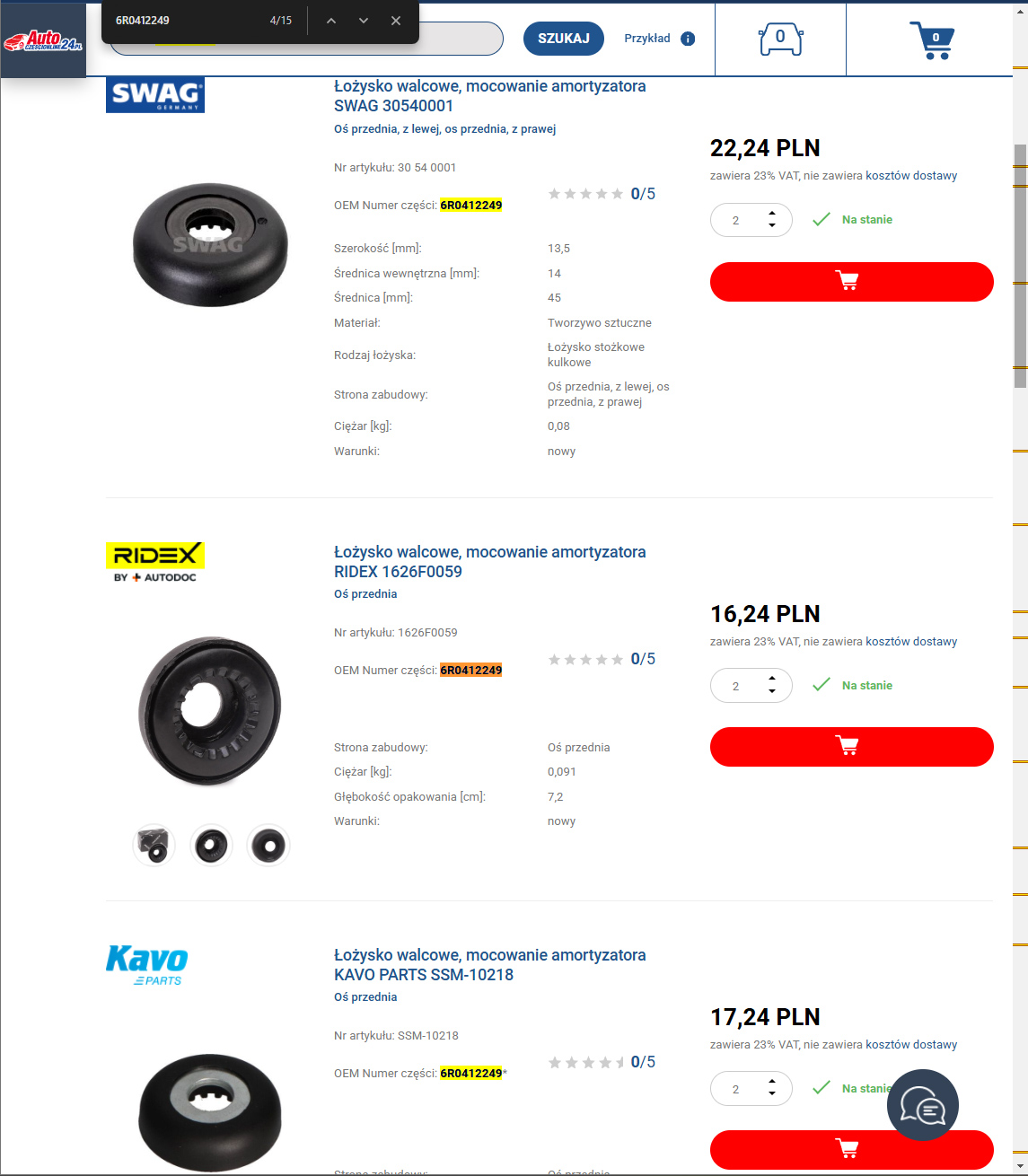 The lack of a flange makes it difficult to perfectly center the bearing, causing it to move constantly. As you can see, choosing the right shock absorber bearing for the Polo 6R isn’t as straightforward as it might seem. When ordering replacements, it’s worth carefully checking what we’re getting – even renowned manufacturers often offer parts that differ significantly from the original.