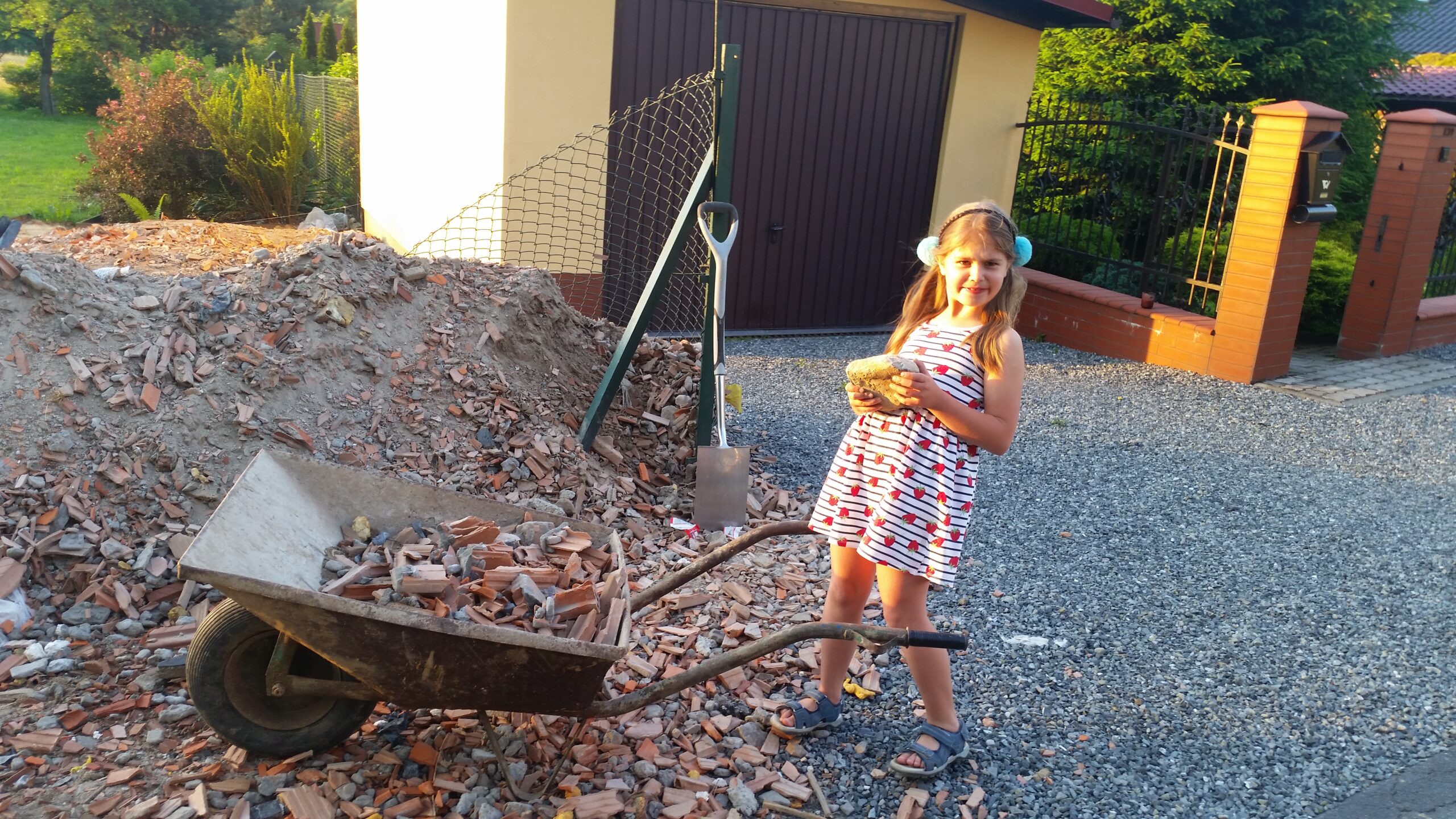 On the plot next door, on a slight hill, is my sister’s garage, so I had to level the ground a bit first. Underneath the garage I ordered rubble from olx.